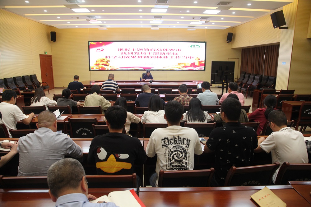 16日下午,市林业局党组书记、局长黄晓莺为全局干部职工作题为《把握主题教育总体要求 找到党员干部新坐标 将学习成果贯彻到林业工作当中》专题党课。