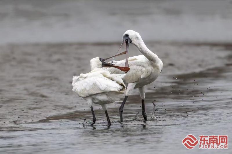 据了解,黑脸琵鹭是全球最濒危的鸟类之一,被誉为鸟类大熊猫;东方白鹳同样数量稀少,全球野生种群仅7000-9000只。黑脸琵鹭、东方白鹳对栖息地的要求极高,需要洁净的水源、丰富的食物和不受干扰的安全环境。它们的到来,不仅为这片美丽的滨海湿地增添了无限生机,也证明福宁湾湿地生态系统健康、生物多样性丰富,能够为这些濒危物种提供充足的食物和安全的停歇环境。